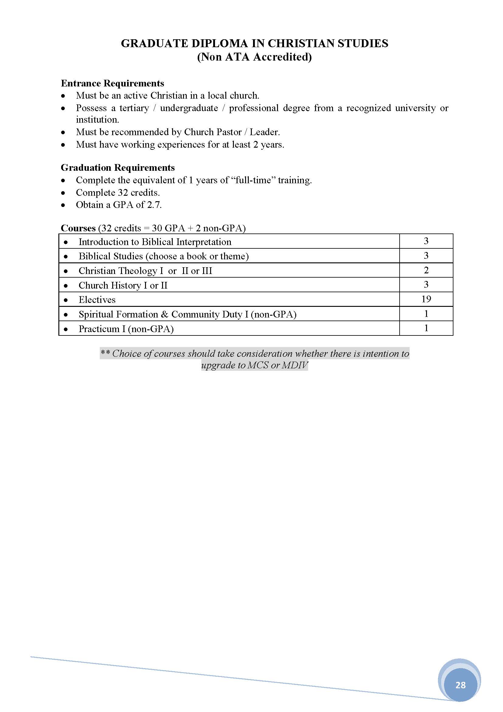 5. Graduate Diploma in Christian Studies more